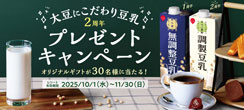- 【スジャータめいらく】 大豆にこだわり豆乳2周年プレゼントキャンペーン