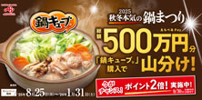 - 【味の素】 「鍋キューブ」秋冬本気の鍋まつり 総額500万円分山分けキャンペーン