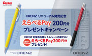 - 【ぺんてる】 ORENZリニューアル発売記念えらべるPay200円分プレゼントキャンペーン