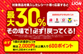 - 【ライオン】 お洗濯・おそうじ用品購入で最大30%戻ってくる!